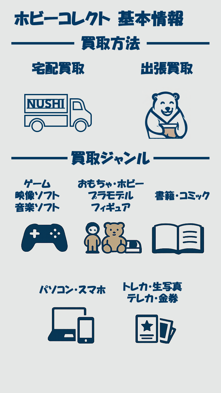 ここでは、ホビーコレクトの基本情報や買取方法、買取ジャンルなどをわかりやすく解説していきます。